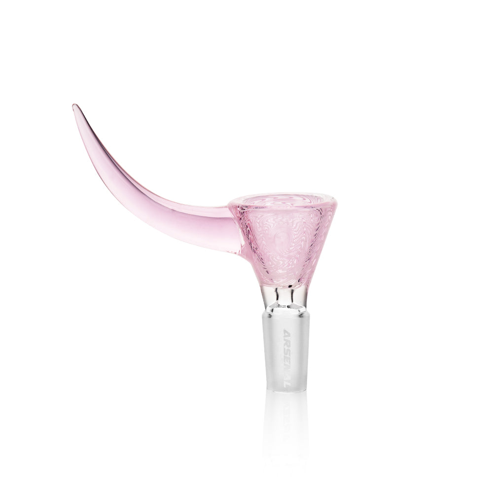 The 2.5" Arsenal Hypno Horn Bowl showcases stunning one-sided horn swirls that evoke a hypnotic, swirling effect, making it a truly eye-catching piece. Crafted from durable glass, this bowl delivers both a striking aesthetic and reliable performance. With its compact size and assorted color options, it’s perfect for those looking to add a dynamic, artistic touch to their collection.
