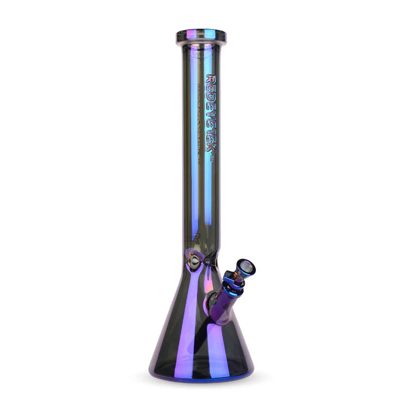 What a beauty! The classic 18" 7mm Thick Terminator Water Pipe from Red Eye Tek® features a signature metallic Terminator design made of 100% borosilicate glass.