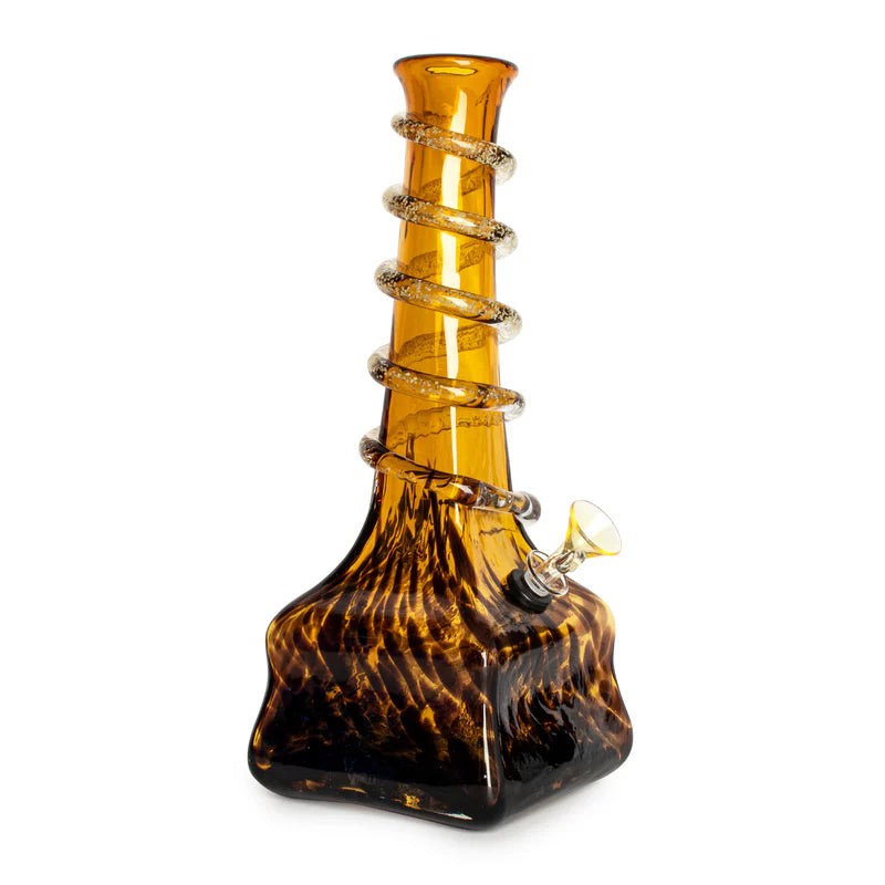 Spark your glass collection with the eye-catching 12" Vigor Water Pipe from Retro Glass®. These wide-based bongs feature a glow-in-the-dark spiral grip and come in assorted colours.